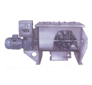 该机由混合槽、螺旋搅拌叶片和传动部件等组合而成,螺旋叶片一般做成二层,外层螺旋将物料从两侧向汇集,内层螺旋将物料从向两侧分流,使物料在混合槽内形成对流混台,从而达到高均匀度混合。